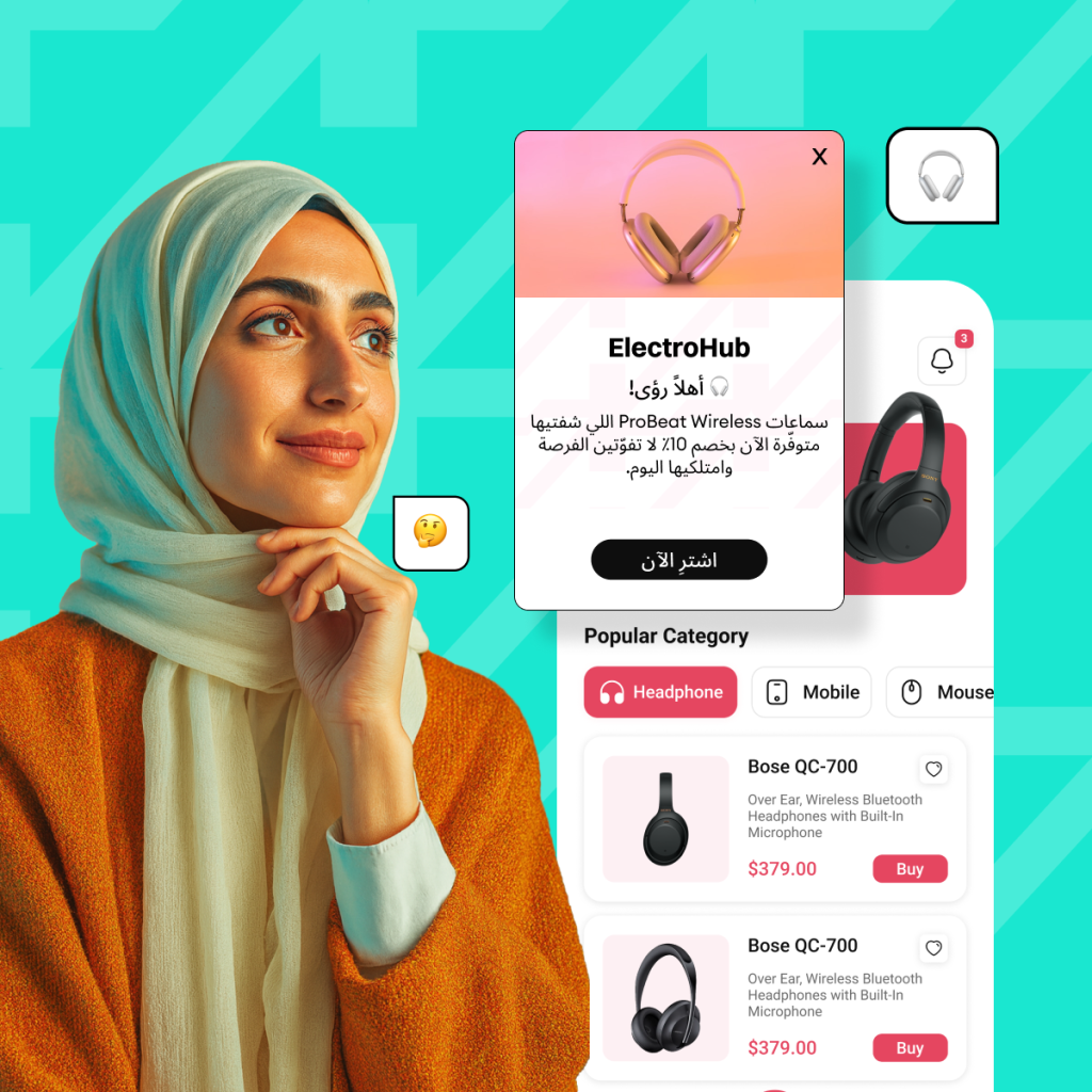 وصل رسائلك للمستخدمين في اللحظة المناسبة وبطريقة شخصية تحفّزهم على التفاعل واتخاذ الإجراءات.