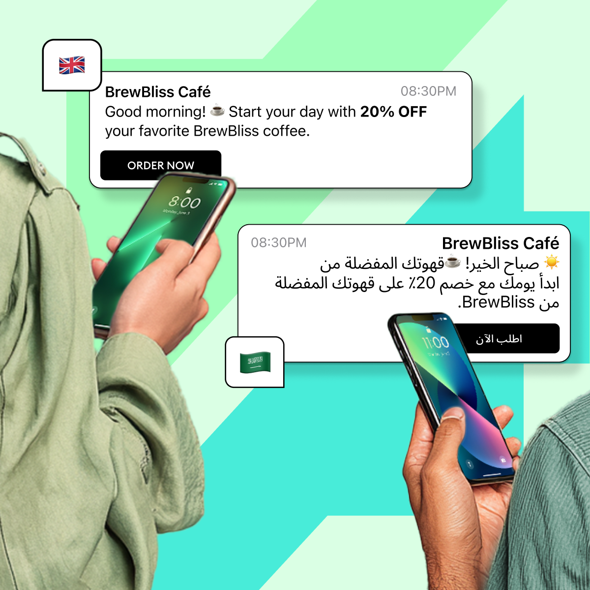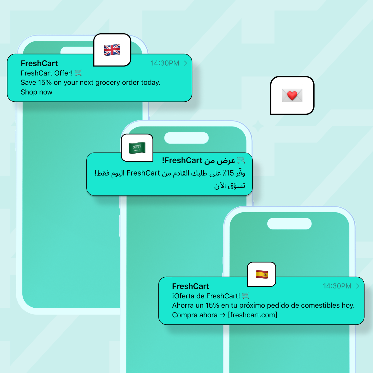 أرسل رسائل باللغات المفضلة لدى العملاء.