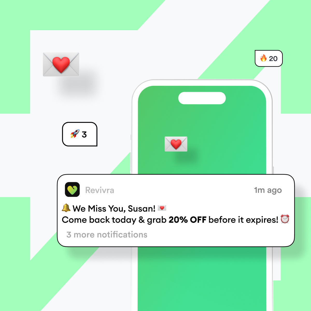 Drive engagement with dynamic, personalized push messages that reconnect users, even offline, through compelling offers, timely reminders, and content that brings them back into your app.